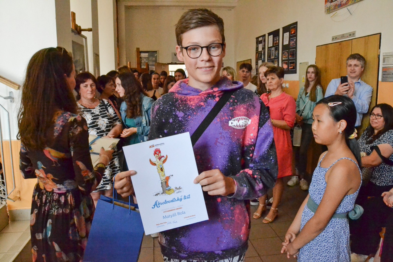 Na slavnostní vernisáži, kde absolventi dostali pamětní list, zahráli žáci ze třídy D. Marišlera.