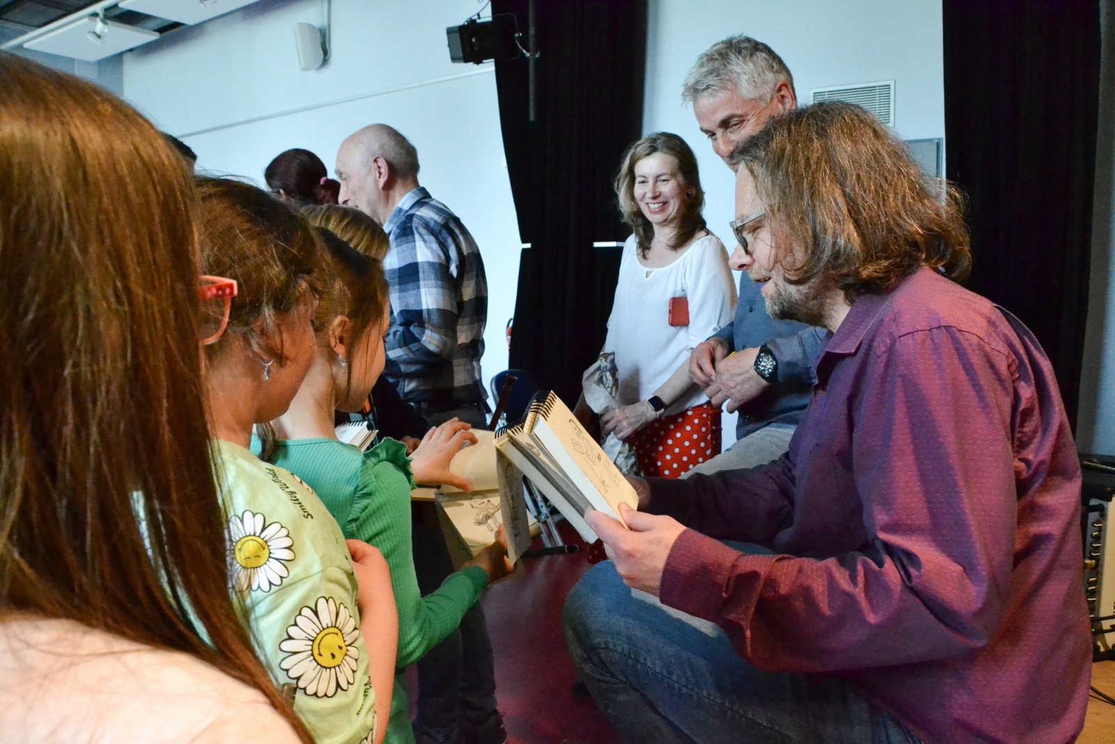 Koncertu se účastnili i naši nejmladší žáci z výtvarného oboru, kteří účinkující pozorně poslouchali a přitom portrétovali. Po skončení koncertu děti své kresby muzikantům ukázaly a vysloužily si od nich uznání. Všichni společně si pak popovídali při vernisážovém občerstvení, které bylo přehlídkou kulinářských dobrot od studentů - akademiků.