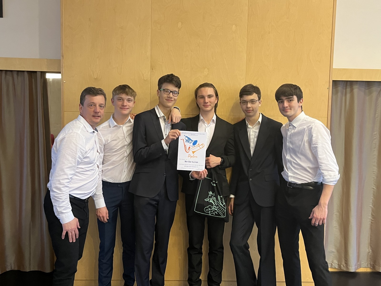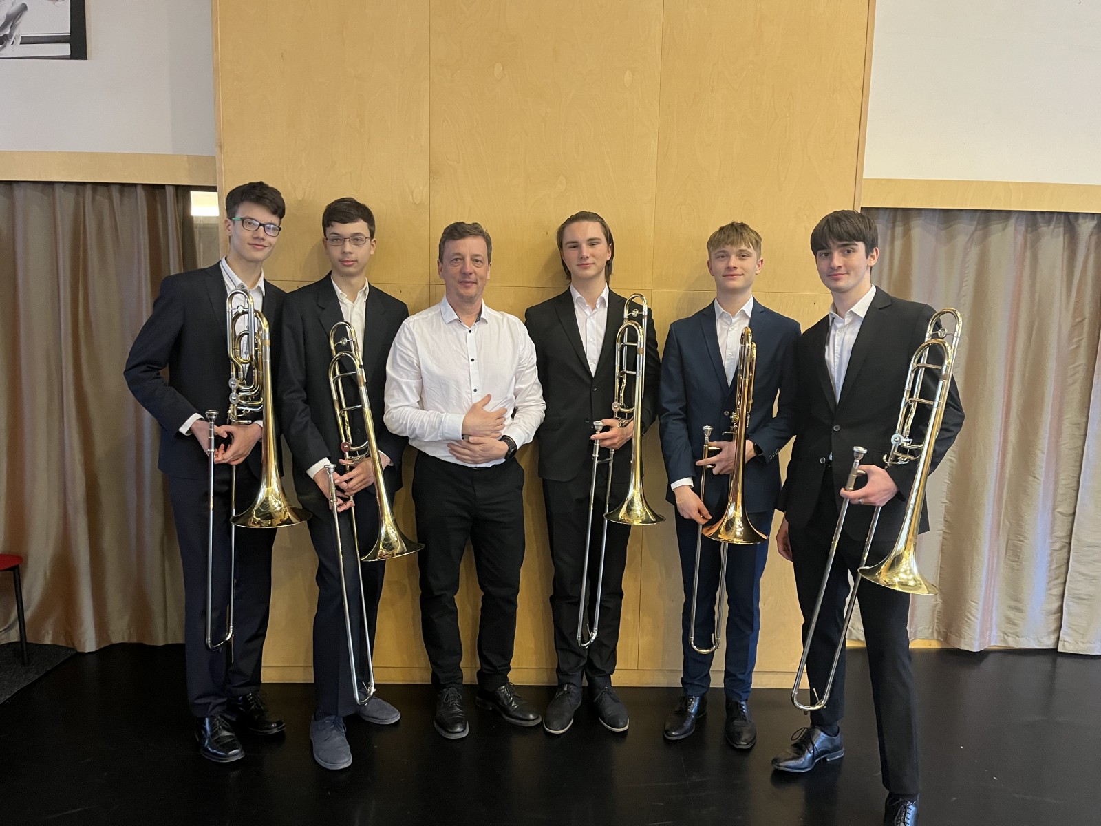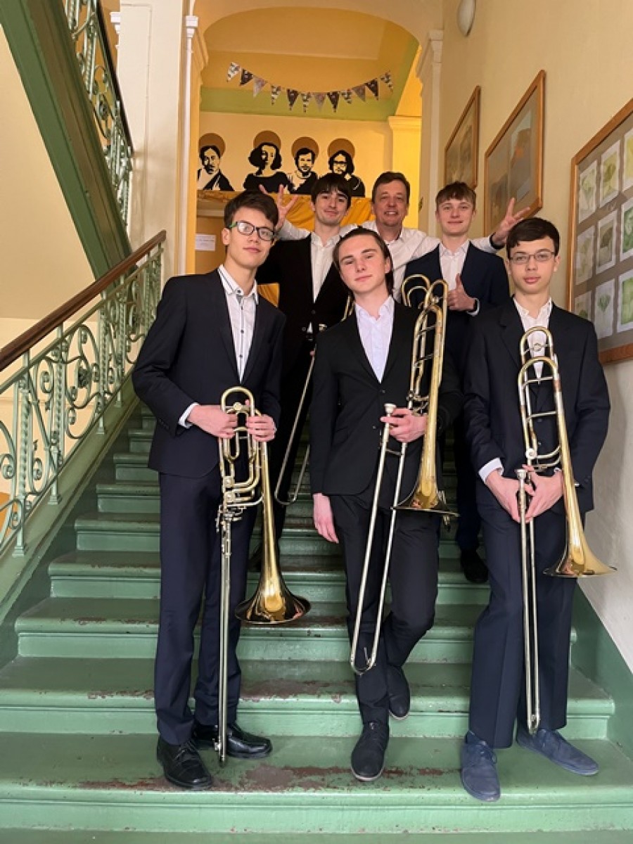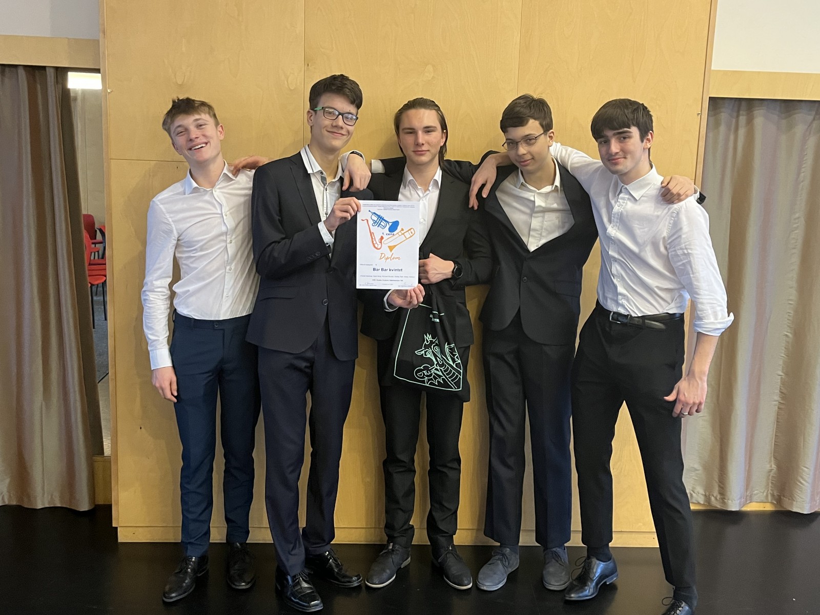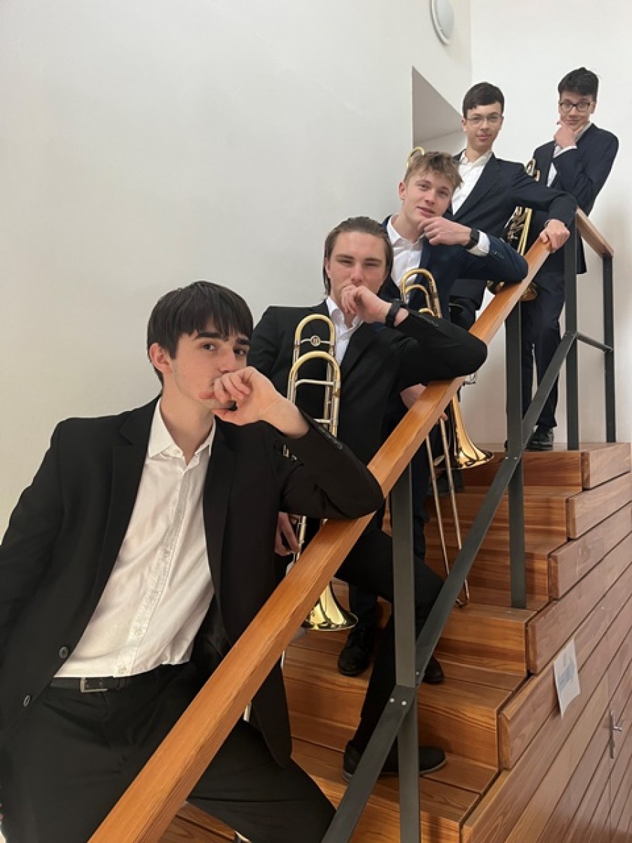Následující den v Trutnově pozounový Bar Bar kvintet (Karel Nový, Tobiáš Melichar, Matěj Záleský, Ondřej Tejkl, Richard Roušal) ze třídy pana učitele Vladimíra Besucha zabodoval v soutěži žesťových nástrojů a získal 1. místo!