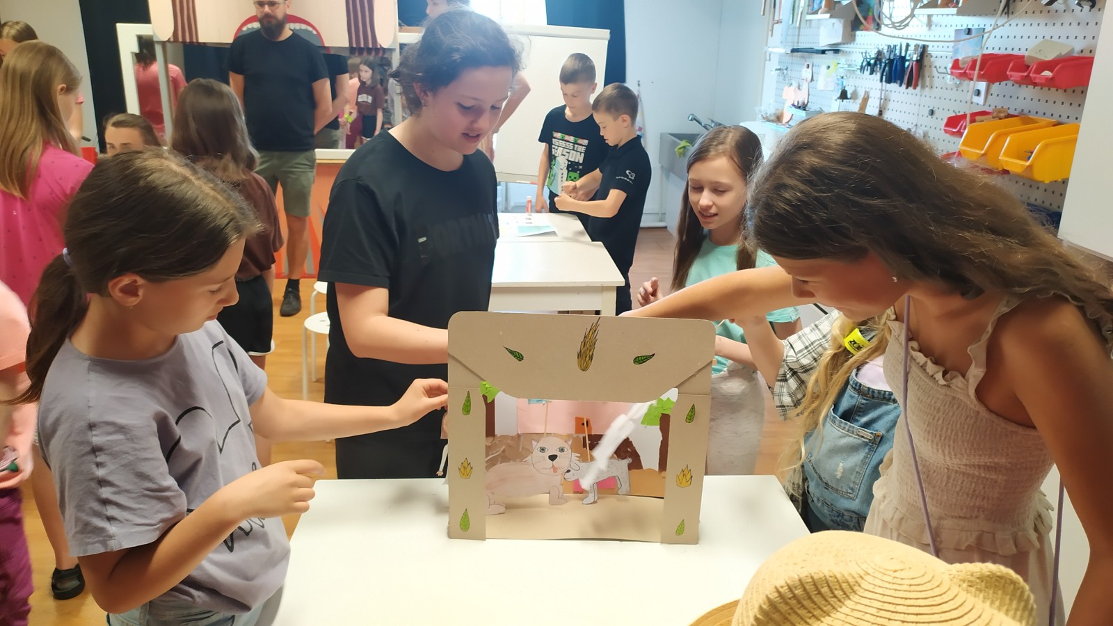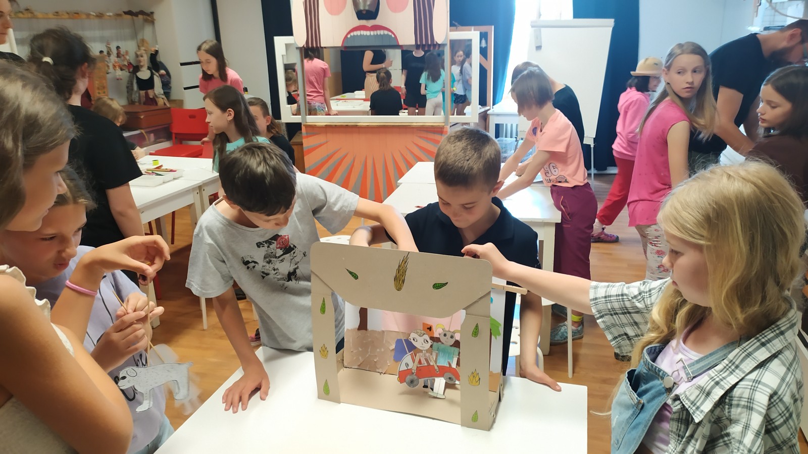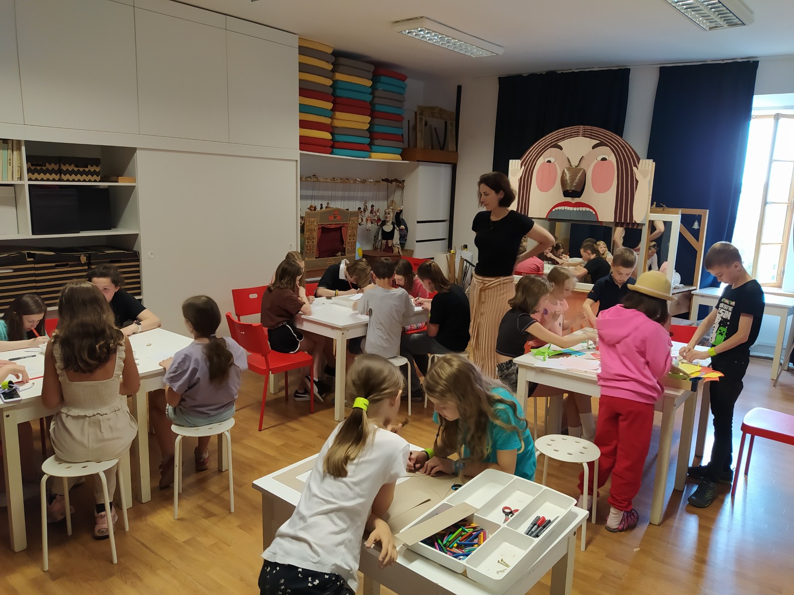 Co jsme si odvezli? Vlastnoručně udělané loutkové divadlo, loutky a dokonce masky do tmy. Jo a vyzkoušeli jsme si jak se se s nimi hraje divadlo, což byl fakt zážitek.