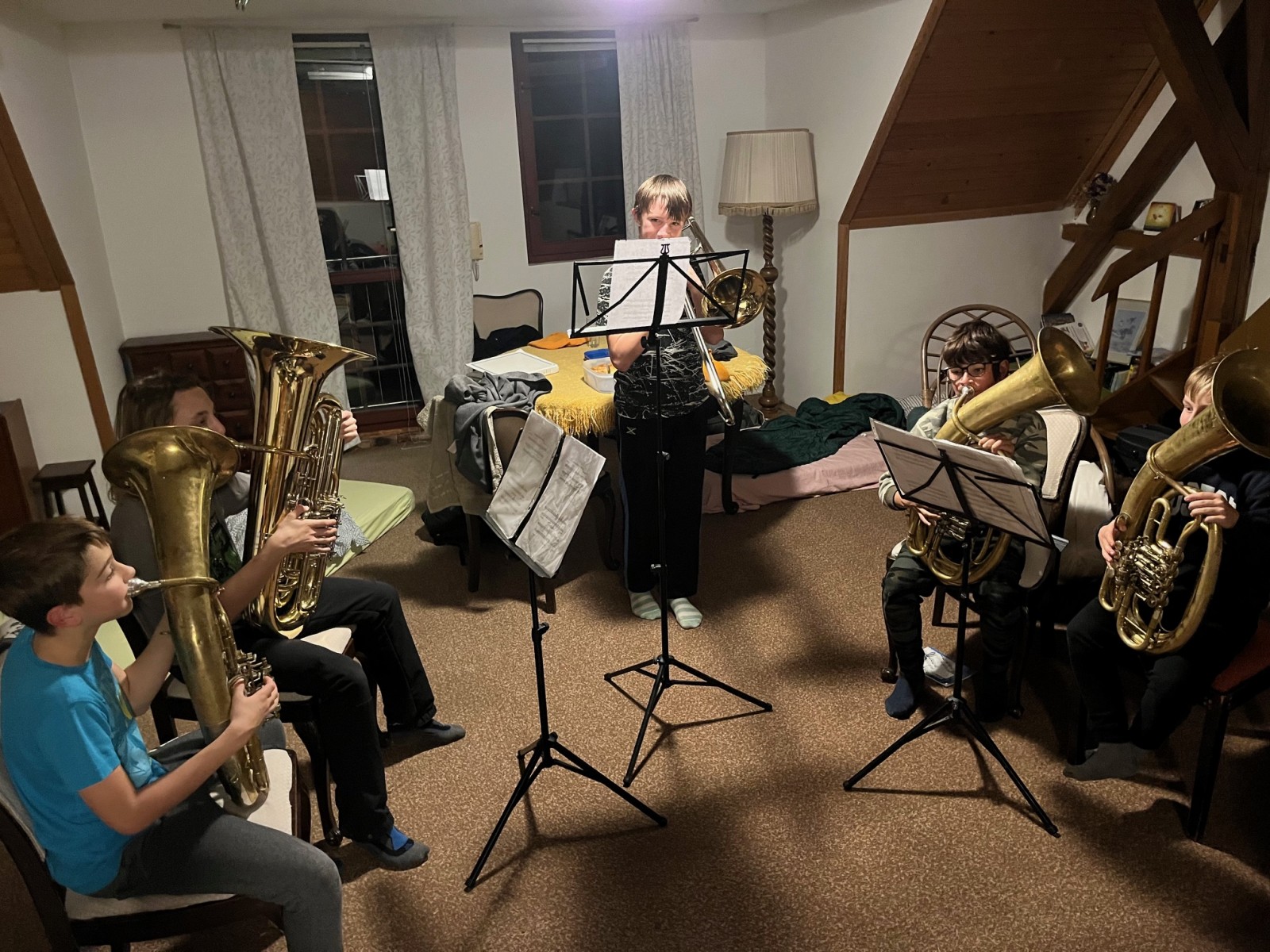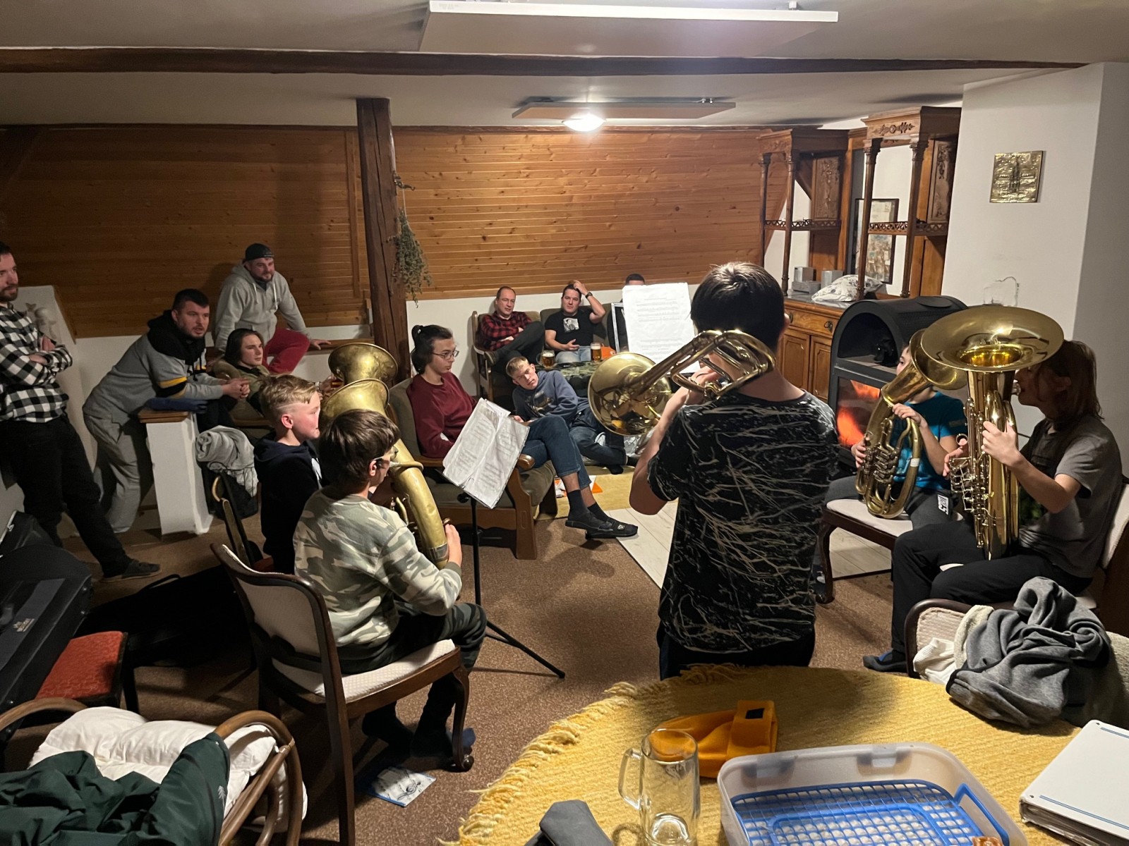 Během předmartinského listopadového víkendu se na Broumovsku sešly žesťové soubory pod vedením Mgr. Vladimíra Besucha. Tromboneband, Bar Bar kvartet a Mini Bar kvartet zde intenzivně nacvičovaly svůj koncertní repertoár – především fanfáry pro příchod sv. Martina na Velké náměstí. Této akce, pořádané Městem Hradec Králové, se žáci dechového oddělení účastní každoročně a slavnostní fanfáry jsou již roky její nedílnou a očekávanou součástí.