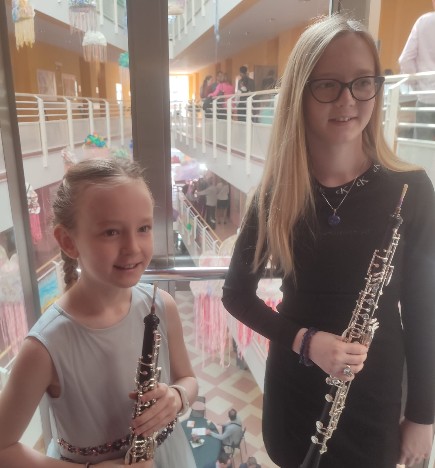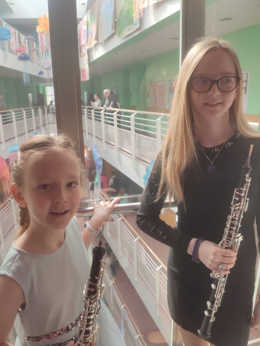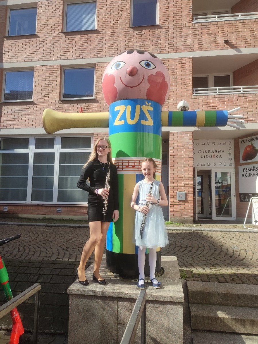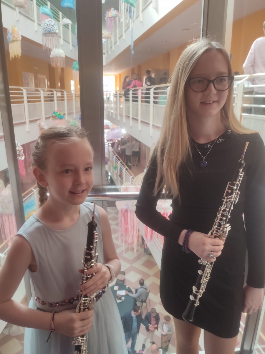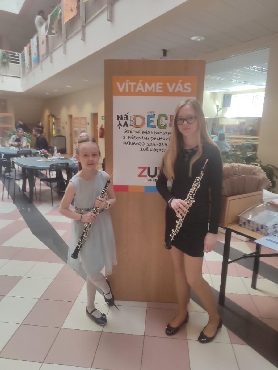 Naše mladé hobojistky Viktorie a Antonie Šedovy ze třídy Evy Hainové se v pátek 21. 4. 2023 zúčastnily nejvyššího (celostátního!) kola soutěže ZUŠ v Liberci. Za svůj skvělý hudební výkon získaly 1. cenu a osobní poděkování a obdiv pana profesora hoboje z Ostravské konzervatoře.