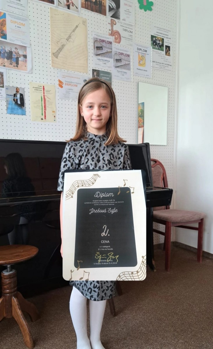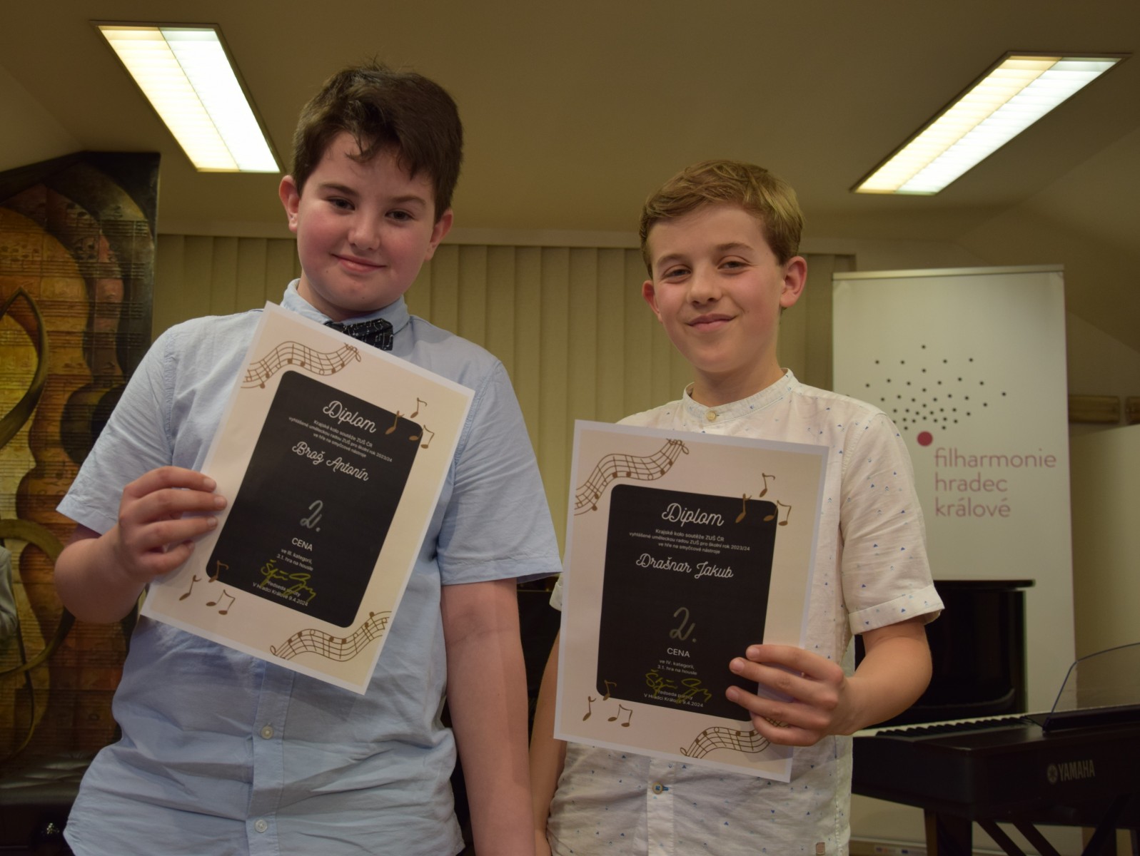 Nemladší v kategorii Sofie Jirešová ze třídy Vladimíry Holubové získala druhou cenu. Ve velké konkurenci celého královéhradeckého kraje vybojoval Antonín Brož a Jakub Drašnar také druhé místo. Oba žáky vede Šárka Pokorná. Všechny kategorie byly plně obsazené vynikajícími výkony, ani Andriana Tančyncová v osmé kategori, ze třídy Petra Strejce to neměla lehké a získala druhou cenu.
