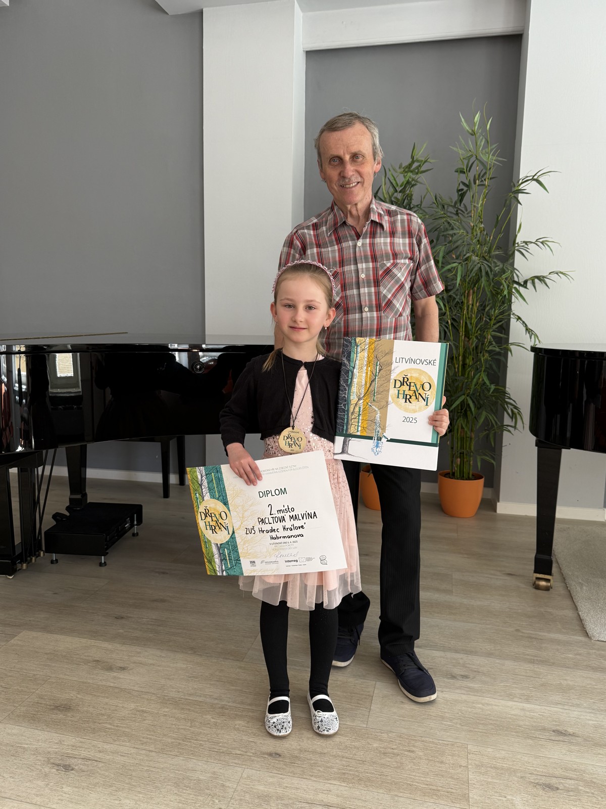 Oběma gratulujeme! Velké poděkování patří panu učiteli Miroslavu Macejovi, který své žáky na soutěž výborně připravil, i paní korepetitorce Oksaně Domoroslově.