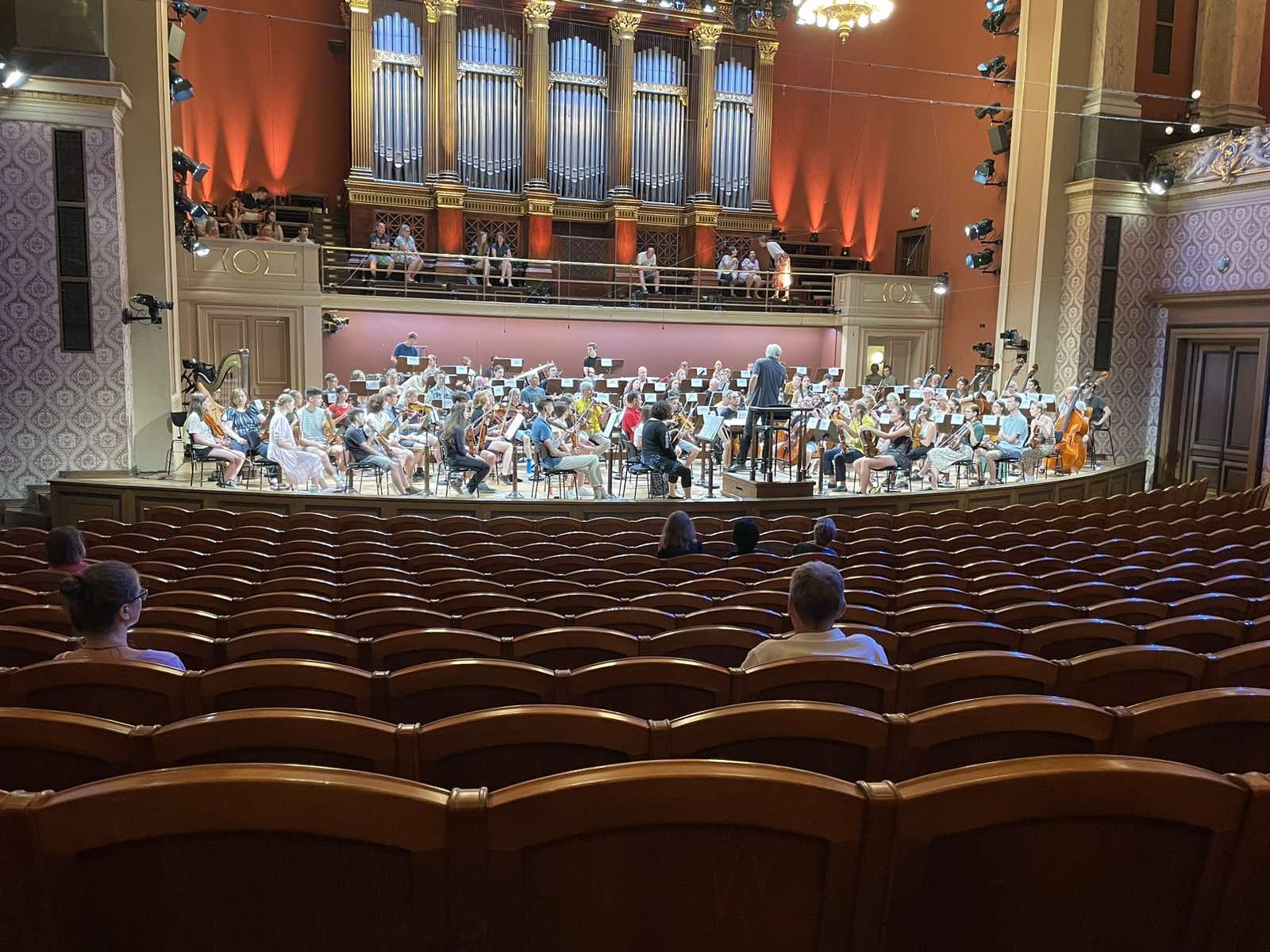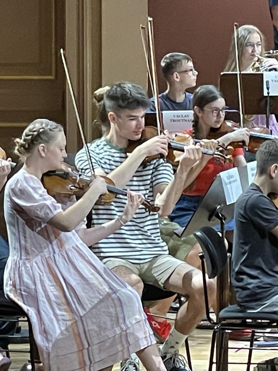 Červnové závěrečné soustředění žáků ZUŠ se členy České filharmonie a koncert v Rudolfinu. V úterý 20. 6. – 23. 6. 2023 se uskutečnilo poslední soustředění žáků ZUŠ spolu se členy České filharmonie v RudolfInu. NašI ZUŠ Habrmanova zastupovala houslistka Markéta Vaňková a violloncelistka Sarah Sophia Karnet. Tentokrát proběhla společná zkouška celého orchestru. Podrobněji se probírala těžká místa partů v rychlejších tempech a dotahovalo se vše k výslednému závěru. To vše bylo obohacené společným programem, setkávání se a besedami s panem dirigentem. Petrem Altrichtem. Vrcholem celého soustředění byla sobota 24. 6., kdy proběhly dva koncerty v Rudolfinu.