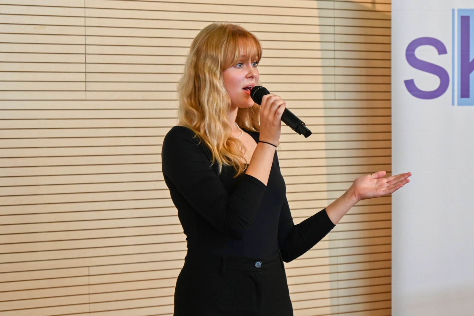 Jednotlivé bloky slavnostního podvečera rámovala vystoupení studentek oboru Populární zpěv, Emy Škrhové a Adély Hebrové, které sice neobdržely knihu, zato vřelé ovace ano.