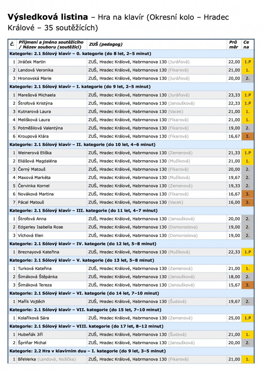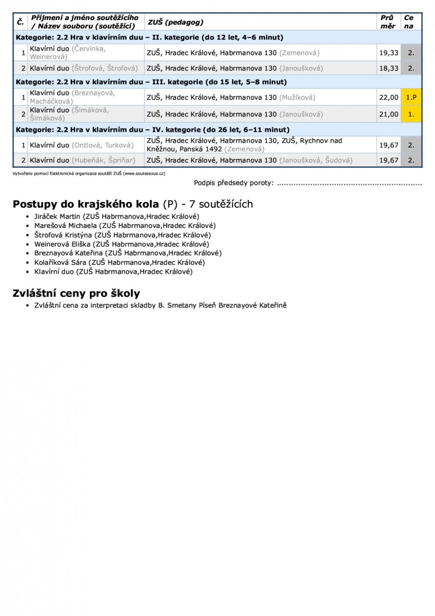 Ve středu 13.3. 2024 se v naší škole konalo okresní kolo soutěže ve hře na klavír. Z naší školy se zúčastnilo celkem 28 soutěžících a ve velké konkurenci obstálo na výbornou. Celkem sedm statečných klavíristů a klavíristek postupuje do krajského kola, které se koná za 14 dní opět v naší škole. Všem soutěžícím gratulujeme k perfektním výkonům.