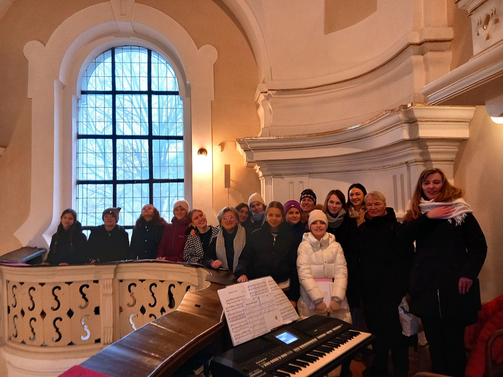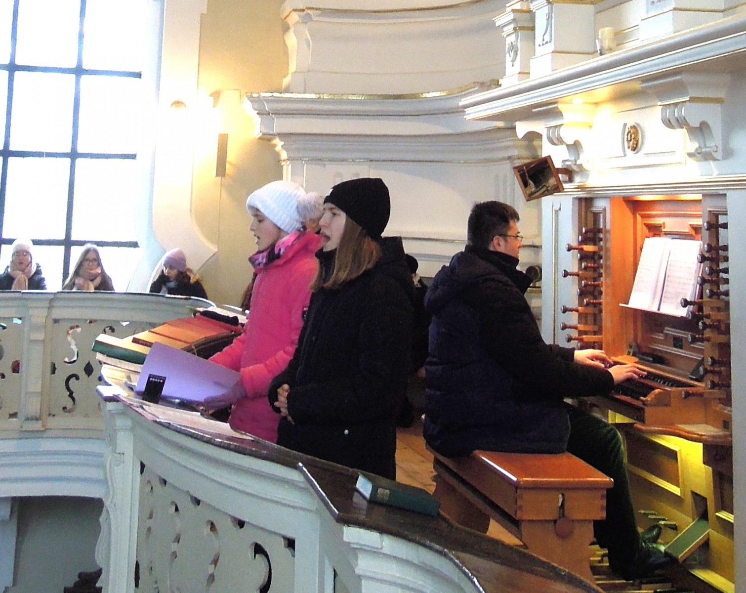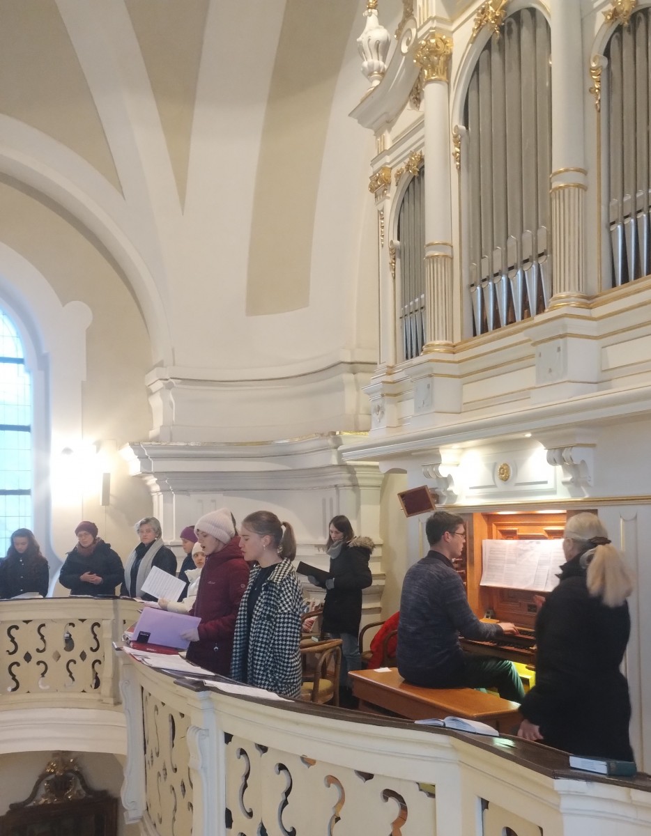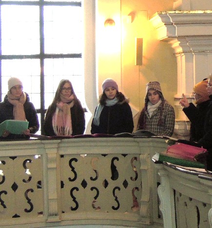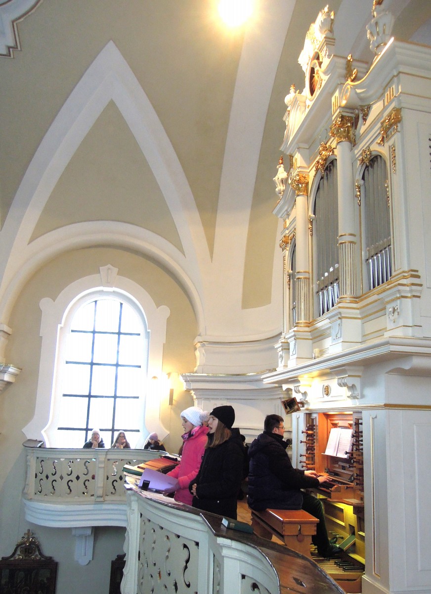 Pěvecká skupina ZUŠ Habrmanova "Rusalenky" tentokrát zahájila sousedskou slavnost svým vystoupením na kostelním kůru u nových varhan z dílny Kánský-Brachtl. Adventní ztišení posluchačům přinesl výběr písní sólových i sborových ze 14. až 21. století: písně z kancionálů, tradicionály, písně současné skaldatelky J. Saidlové, ale i duchovní písně W. A. Mozarta a G. Faureho. Na varhany doprovázel Petr Vacek, sóla zpívaly Emma Wertzová a Magdalena Vlková. Největším zážitkem pro zpívající "Rusalenky" byl ale sám varhanní nástroj, jeho zvuk a nevídaný způsob hry, tak odlišný od elektrických kláves! ...Pro někoho objev a velký zážitek.