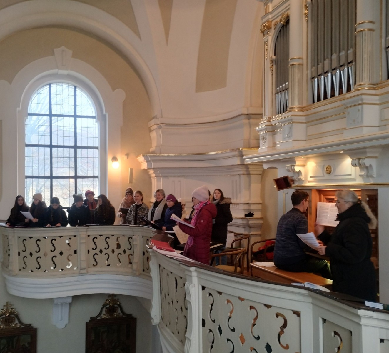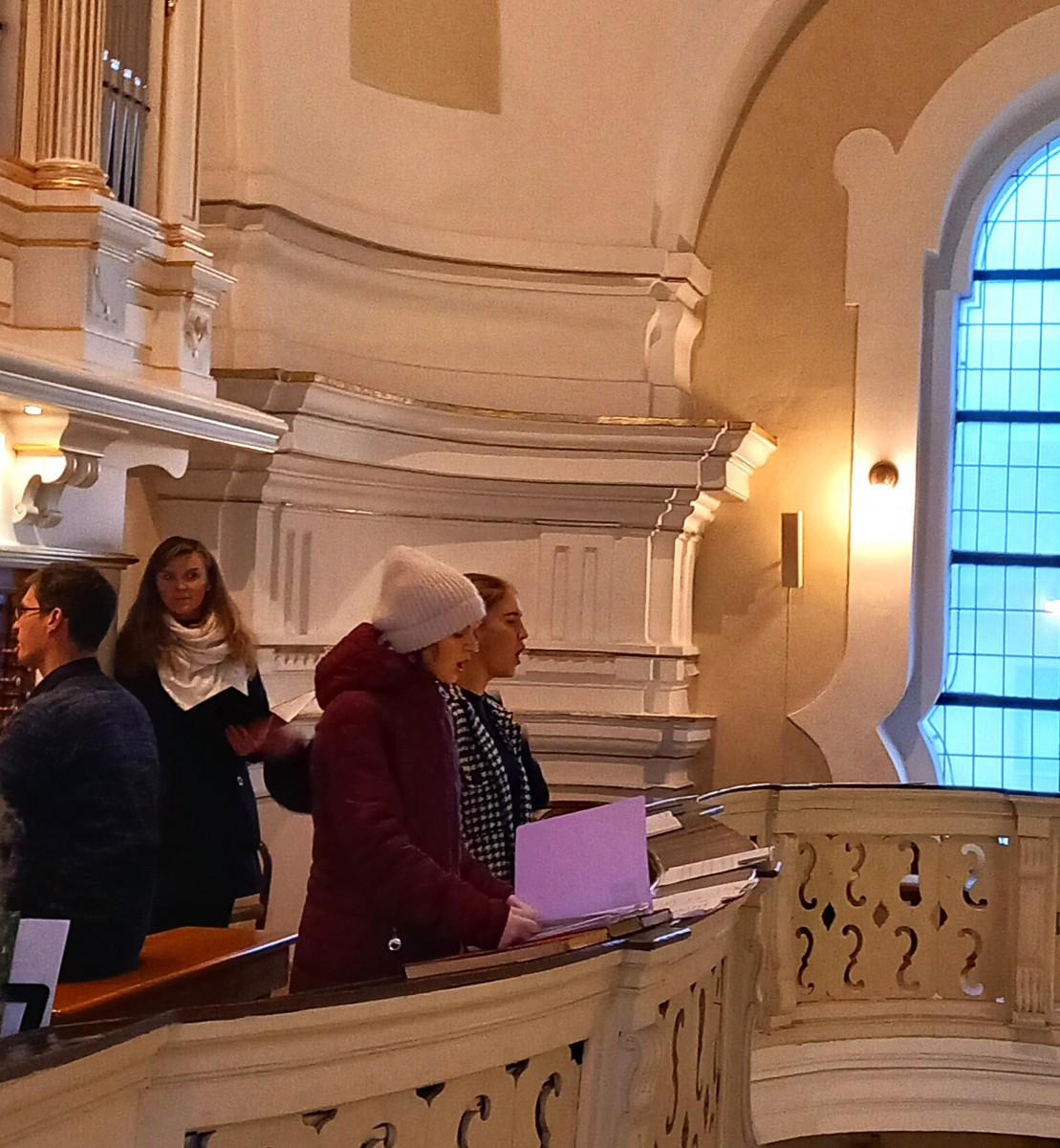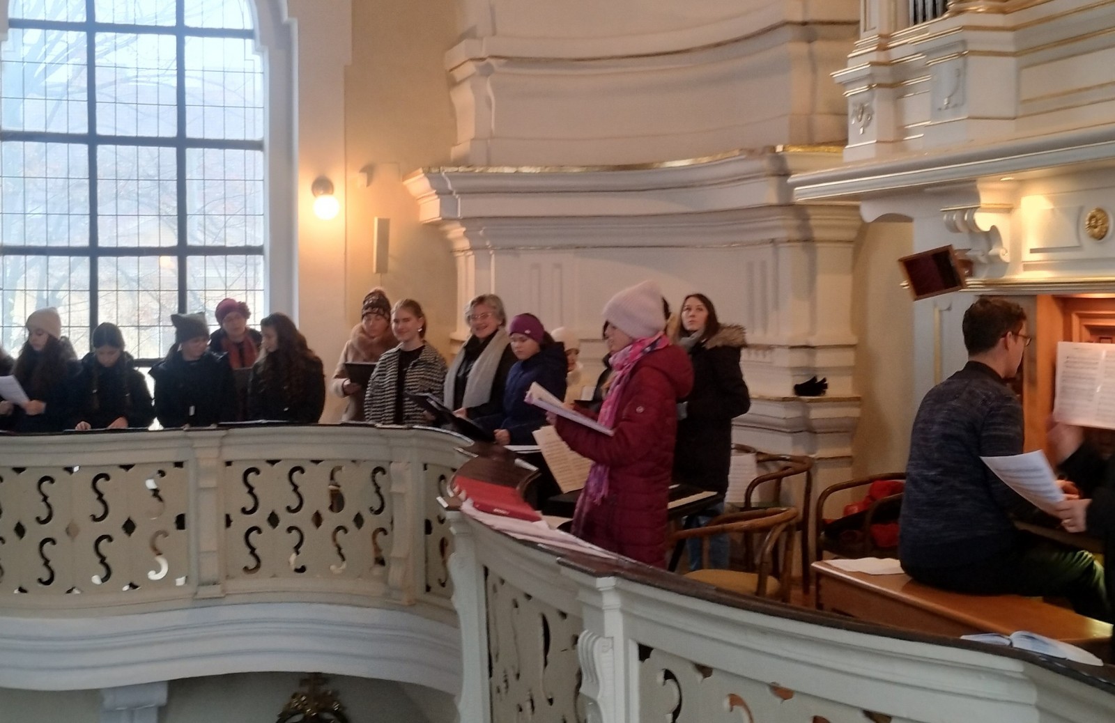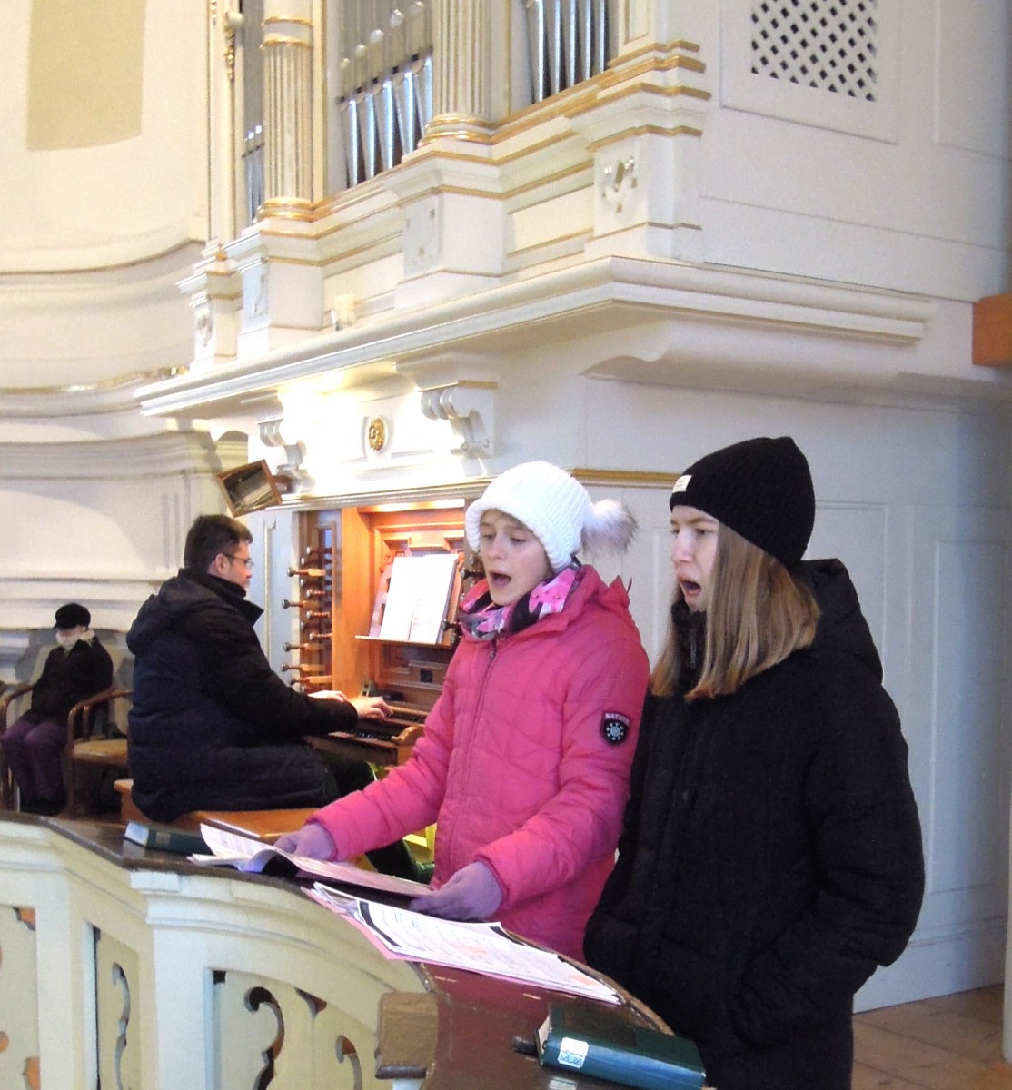 Pěvecká skupina ZUŠ Habrmanova "Rusalenky" tentokrát zahájila sousedskou slavnost svým vystoupením na kostelním kůru u nových varhan z dílny Kánský-Brachtl. Adventní ztišení posluchačům přinesl výběr písní sólových i sborových ze 14. až 21. století: písně z kancionálů, tradicionály, písně současné skaldatelky J. Saidlové, ale i duchovní písně W. A. Mozarta a G. Faureho. Na varhany doprovázel Petr Vacek, sóla zpívaly Emma Wertzová a Magdalena Vlková. Největším zážitkem pro zpívající "Rusalenky" byl ale sám varhanní nástroj, jeho zvuk a nevídaný způsob hry, tak odlišný od elektrických kláves! ...Pro někoho objev a velký zážitek.