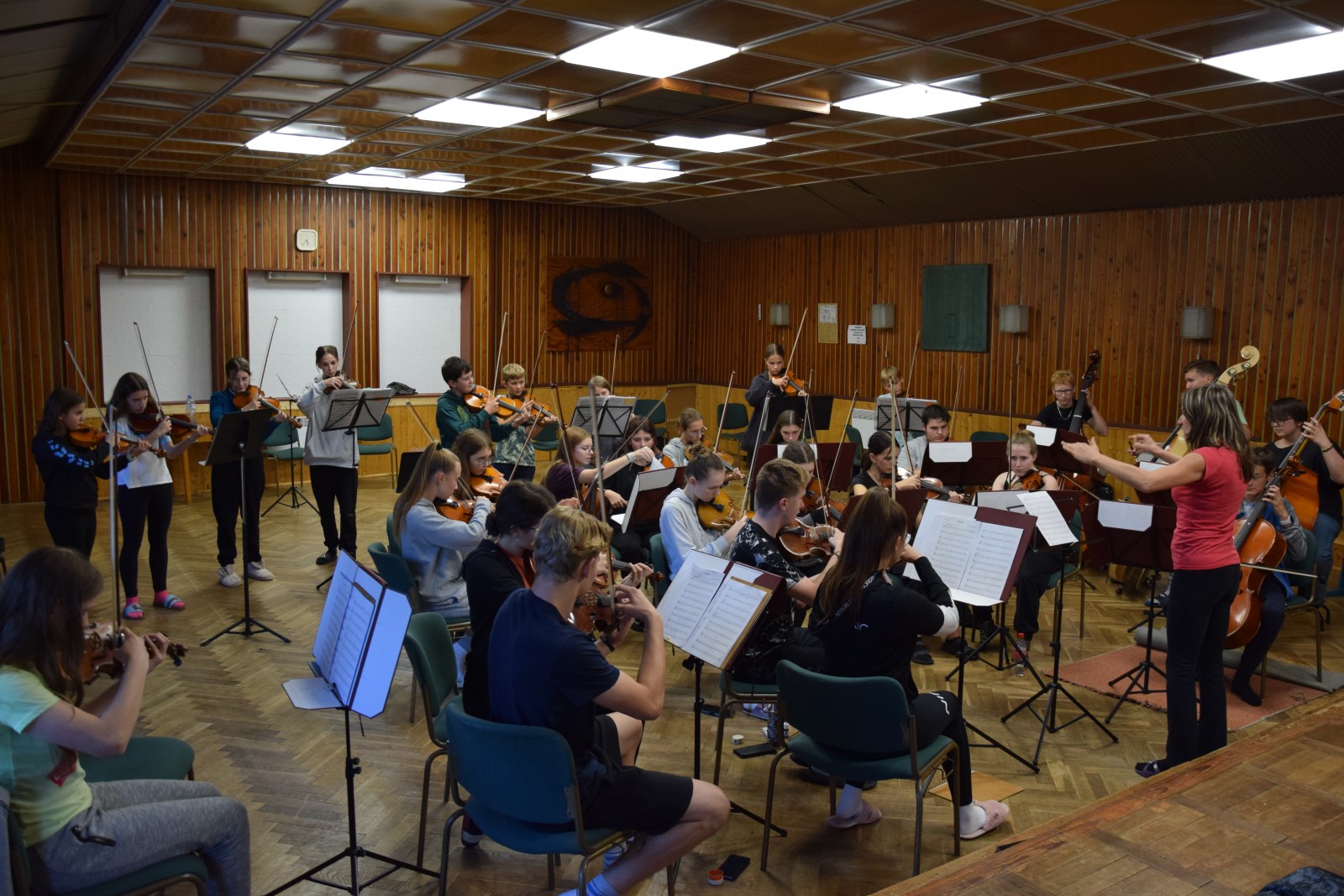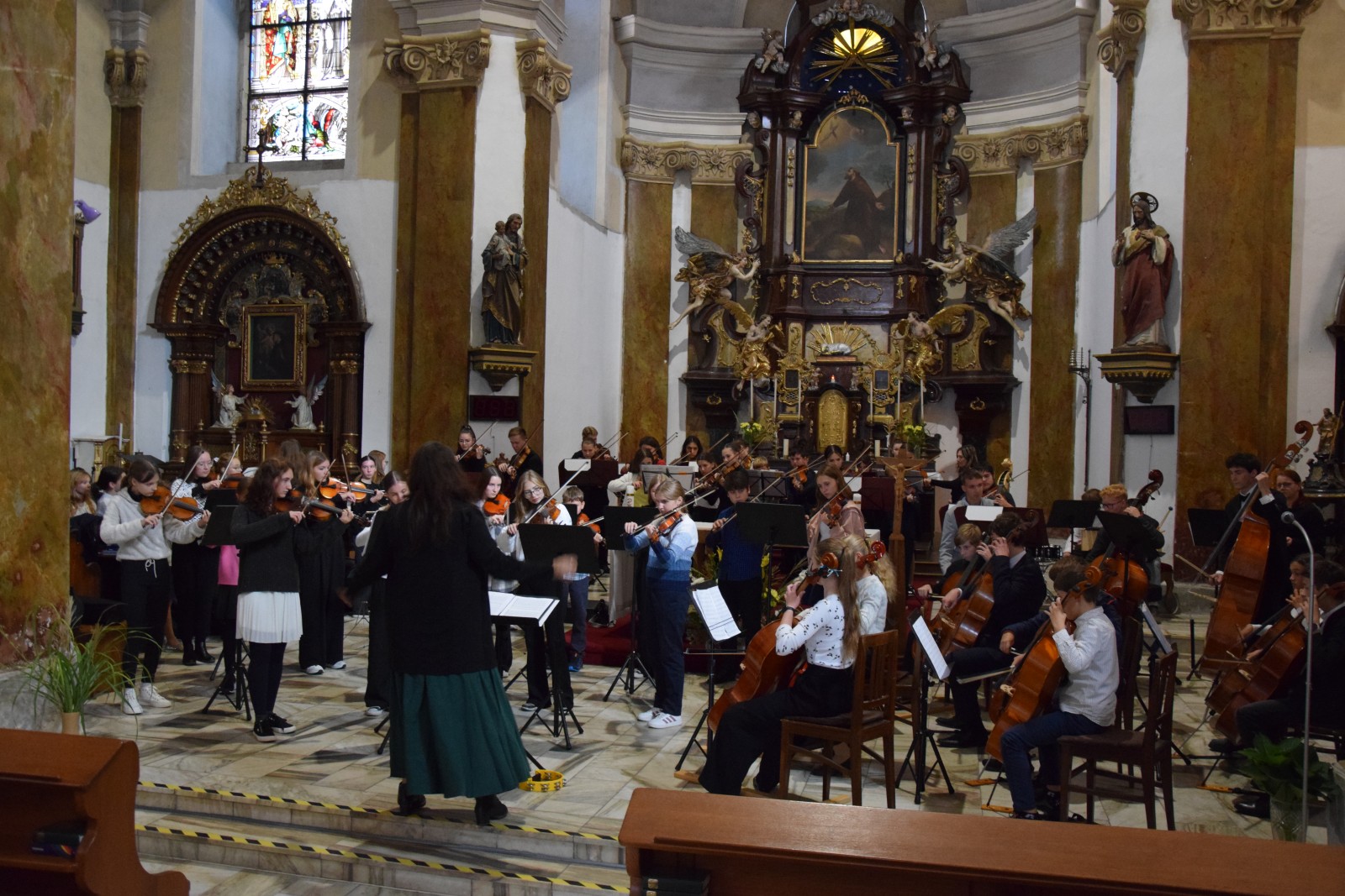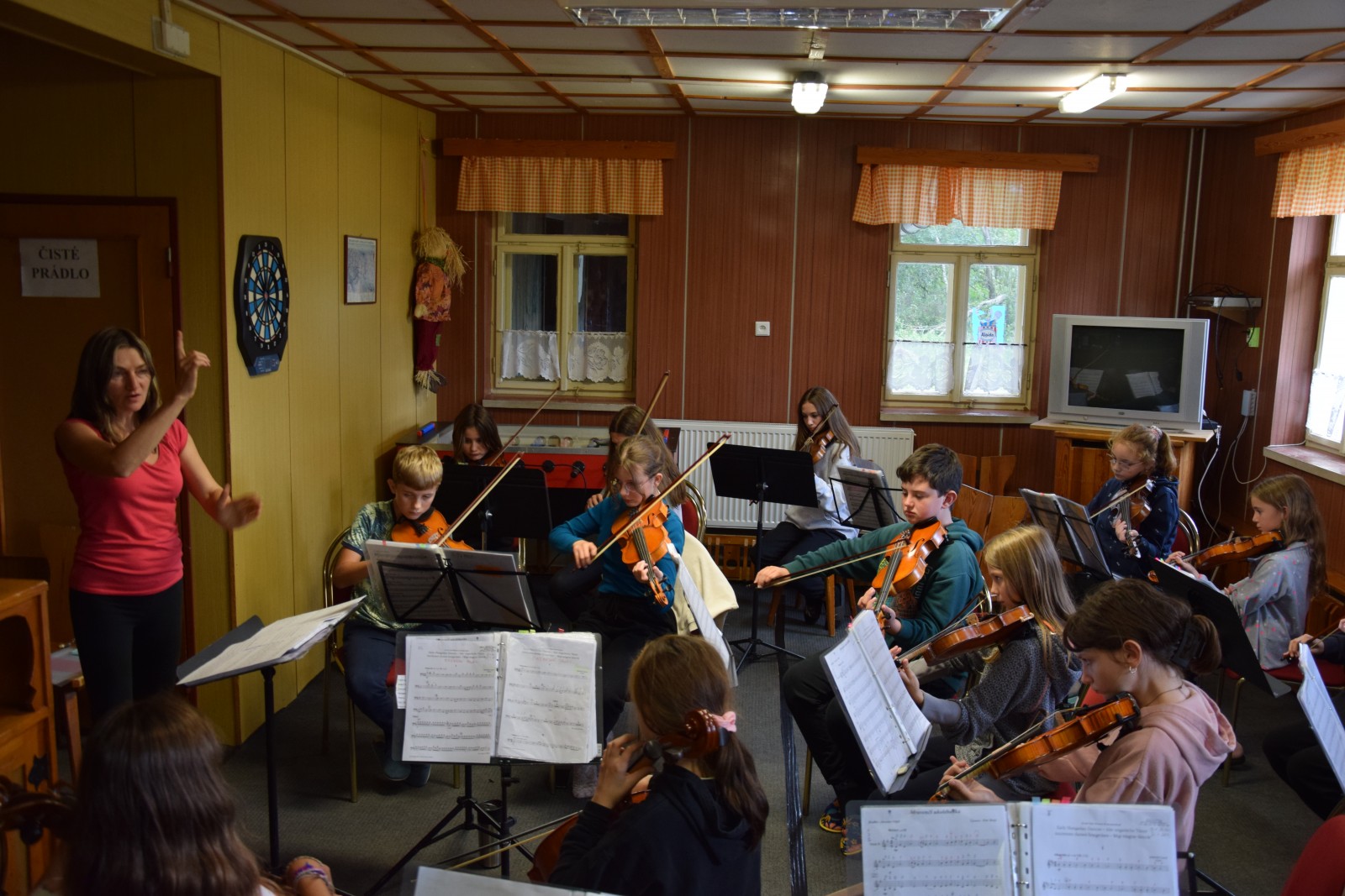 Během náročného víkendu se nám podařilo sehrát oba orchestry, oprášit starý repertoár, ale také nastudovat pár nových skladeb. Do mimohudebních aktivit se hodně zapojili nejstarší žáci, kteří vymysleli různé poznávací hry a připravili si také noční stezku odvahy. V neděli dopoledne se na chatě Perla uskutečnil malý koncert pro majitele objektu. V neděli odpoledne pak následoval přesun do města Chocně, kde žáci zahráli na benefičním koncertě společně s orchestry ze ZUŠ Choceň. Výtěžek koncertu byl věnován lidem postiženým povodněmi. Kostel byl úplně plný posluchačů a byl to opravdu velmi krásný zážitek. Reprízu vystoupení staršího orchestru Juventus Gradecensis si můžete poslechnout hned v úterý 1.10.2024 ve Filharmonii Hradec Králové, kde se bude o pódium dělit s dalšími hradeckými tělesy.