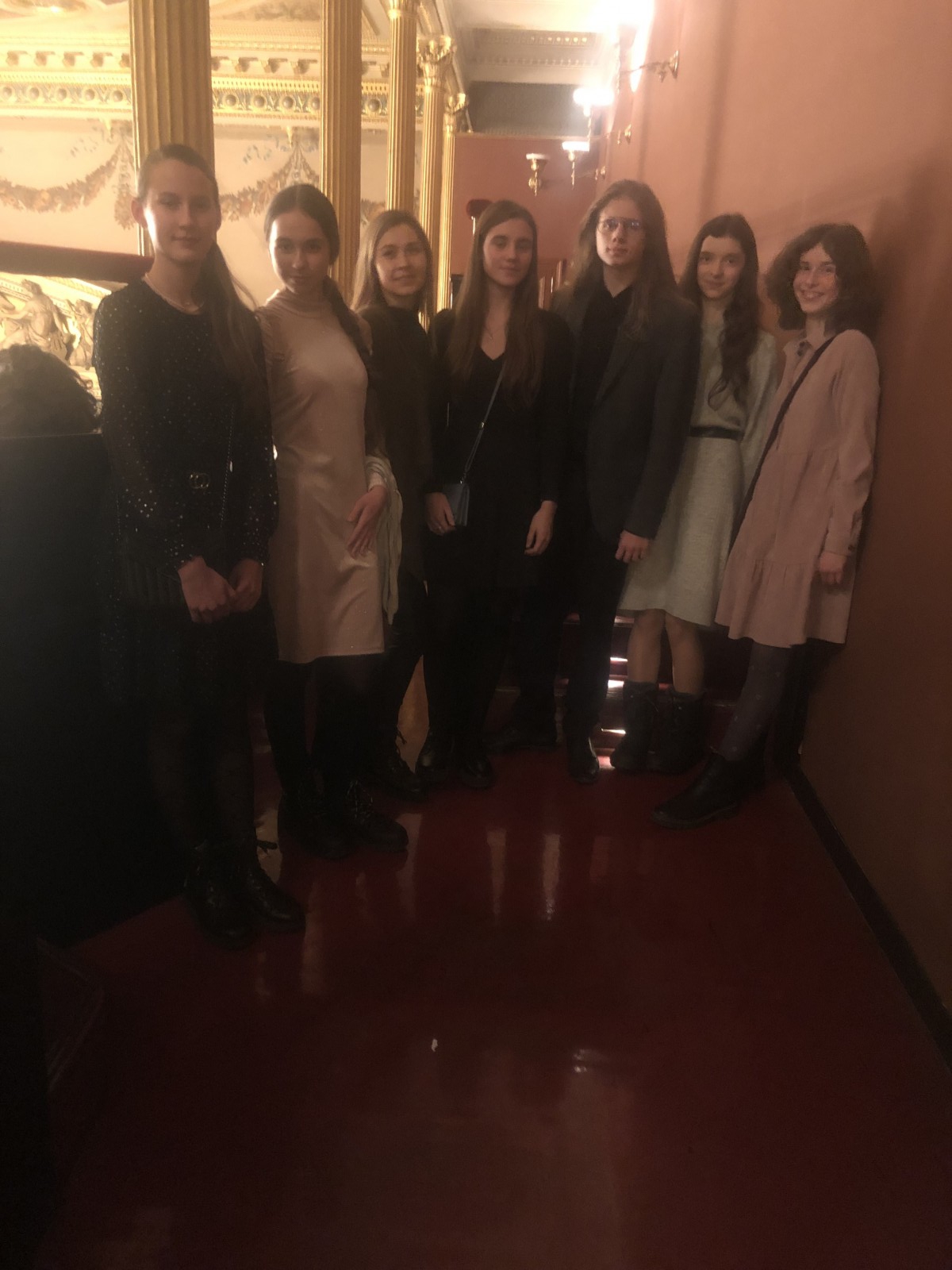 Vstupem do jarních prázdnin byl zájezd celého tanečního oboru Zuš Habrmanova do Národního divadla na balet Johna Cranko - “Oněgin”. Perfektní technický výkon, překrásné kostýmy a hudba P. J. Čajkovského, která nás přenesla do časů, kdy se dámy a kavaleristé seznamovali na plesech, dámy nosily dlouhé šaty a kavaleristé se stříleli na duelech.