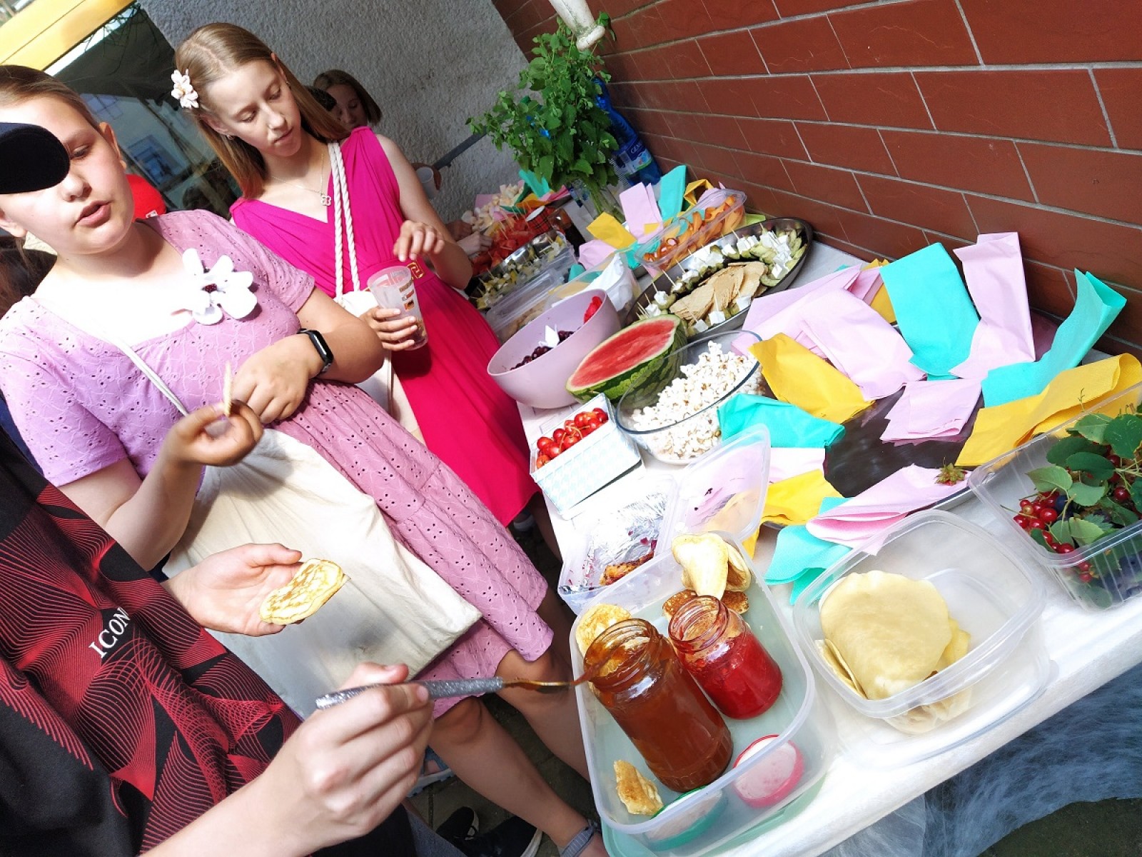 Akci doprovodili převážně francouzskými písněmi žáci pěveckého oddělení Ludmily Kroupové a Emma Wertzová s tatínkem.