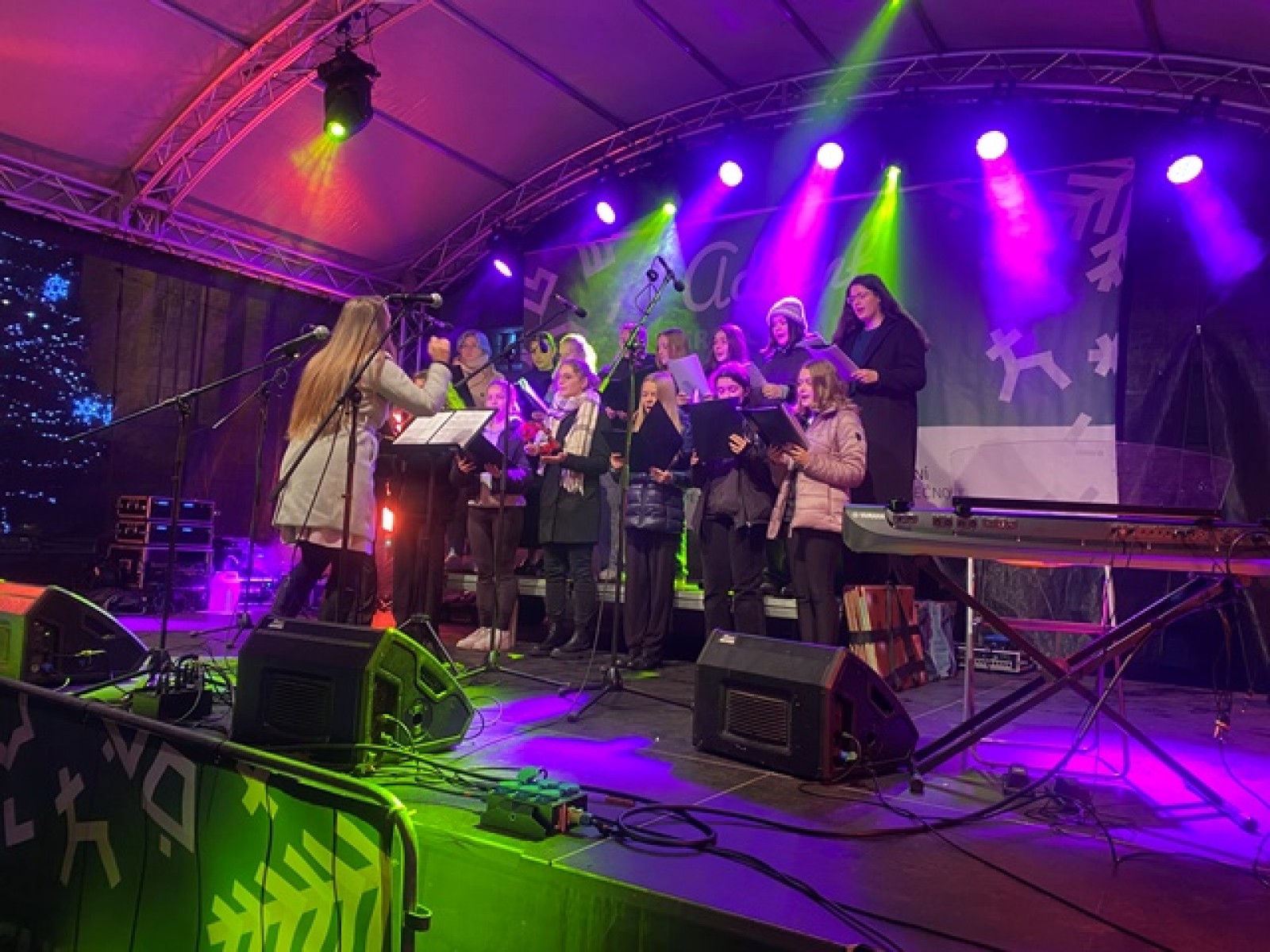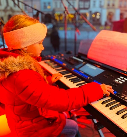 Královéhradecké Vánoční trhy jsou neodmyslitelnou součástí adventního období a jako každý rok přinášejí nejen nabídku vánočních dobrot, ale také pořádnou porci (před)vánoční hudby. Jako již tradičně se zde svého vystoupení zhostili i žáci ZUŠ Habrmanova: klávesisté ze třídy Adély Šarmanové a zpěváci pod vedením Kláry Dušánkové si připravili pestrou směs tradičních koled, populárních vánočních písní a hitů se zimní tématikou. Připomněli tak, že Ježíšek tu bude co nevidět.